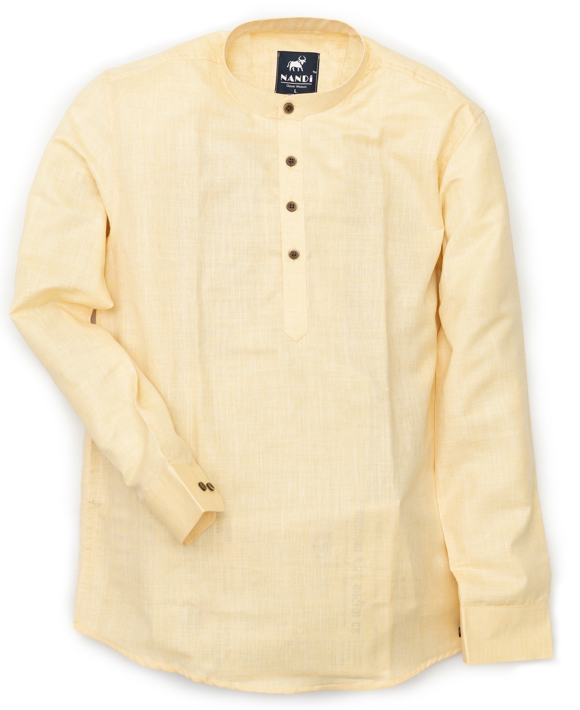 Men’s Shirt Kurta in a vibrant Sunshine Yellow – All-Season Casual Parties , Festive Wear and Dates