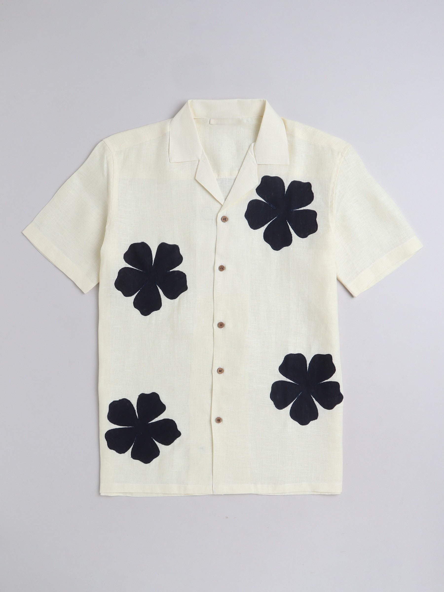 NANDi Discret Edition Linen Shirt with Floral Appliqué